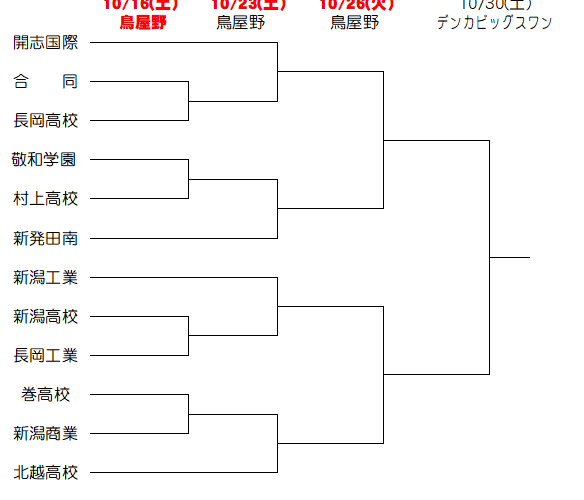 花園予選です! 北越高校の初戦は、10/16一回戦の勝者:巻高校と対戦です。 無観客ですが、熱い応援をよろしくお願い致します!!